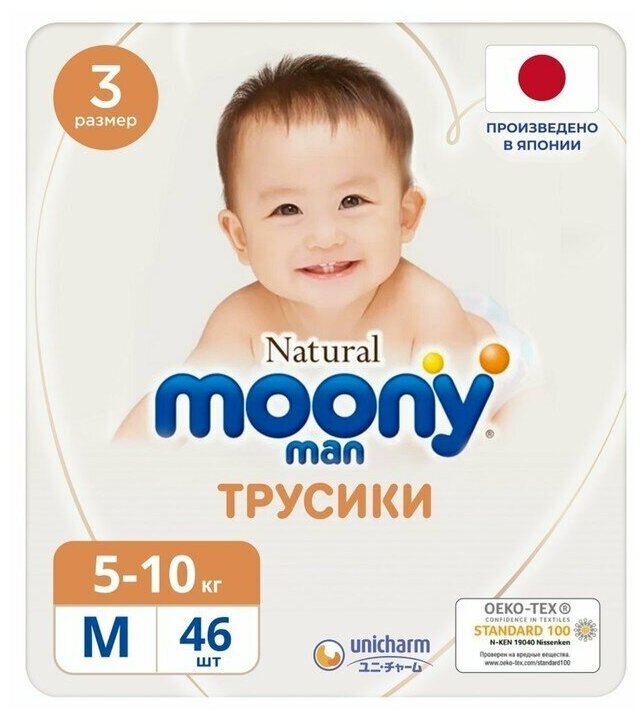 MOONYMAN Natural трусики, M (5-10 кг), 46 шт. интересное: