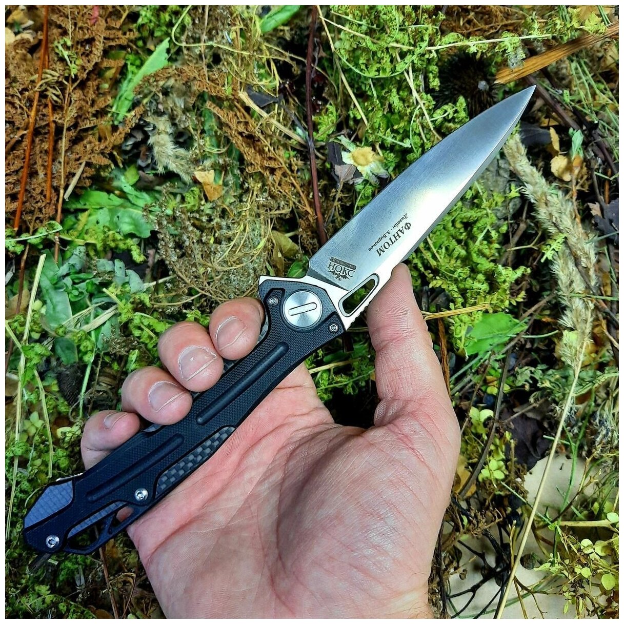 Складной нож Фантом, сталь D2, рукоять G10, карбон