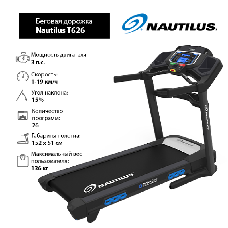 Ниже Вы можете прочитать отзывы на Беговые дорожки Nautilus Беговая дорожка Nautilus T626, ознакомится с подробными характеристиками, посмотреть интересные обзоры и фотографии на Беговые дорожки Nautilus Беговая дорожка Nautilus T626.