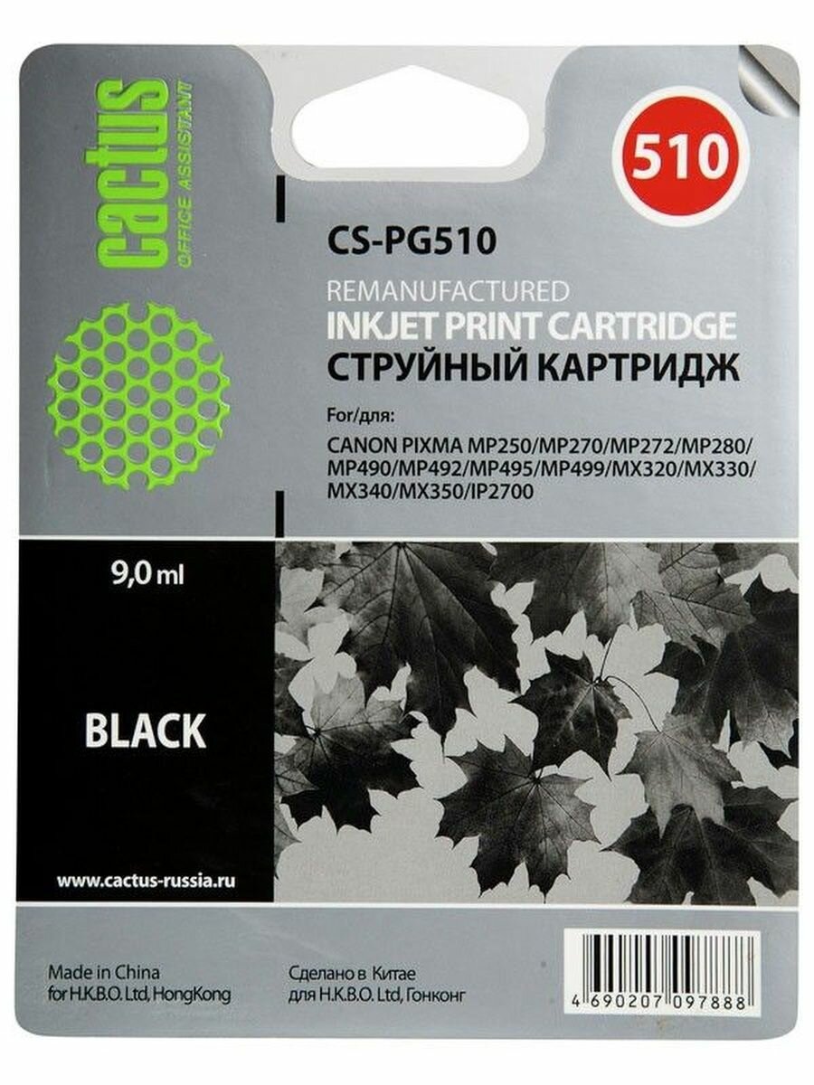 Cactus PG-510 Картридж CS-PG510 для PIXMA MP240 MP250 MP260 MP270 MP480 MP490 MP492 MX320 MX330 черный, 9 мл.