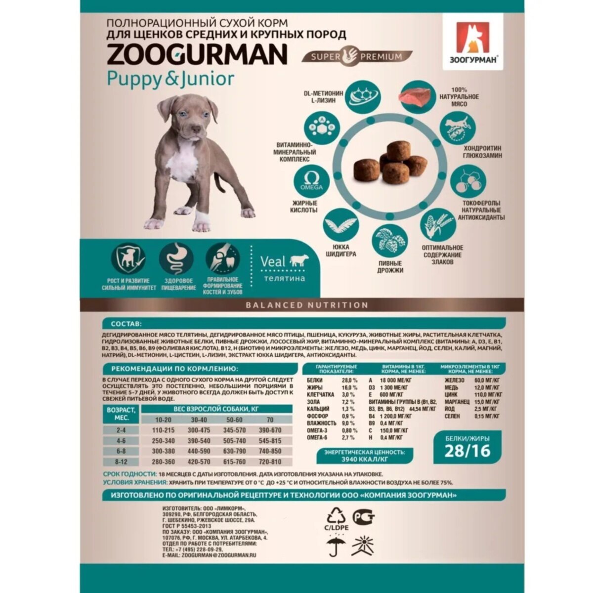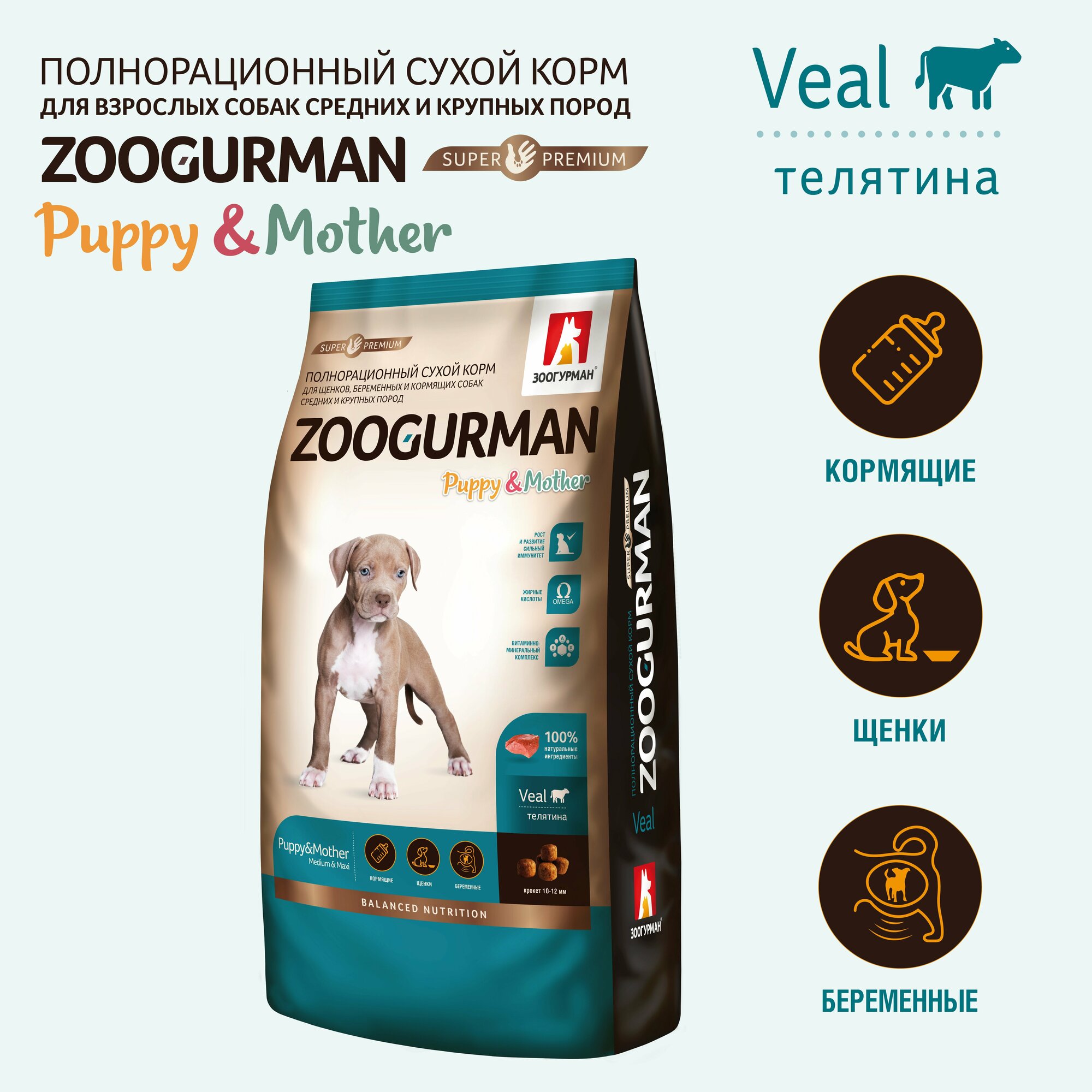 Зоогурман Zoogurman Puppy&Mother Сухой корм для щенков средних и крупных пород с Телятиной 12кг