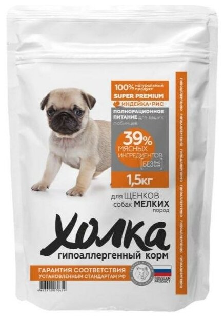 Корм холка гипоаллергенный премиум класса для щенков собак мелких пород с индейкой и рисом, 1.5 кг