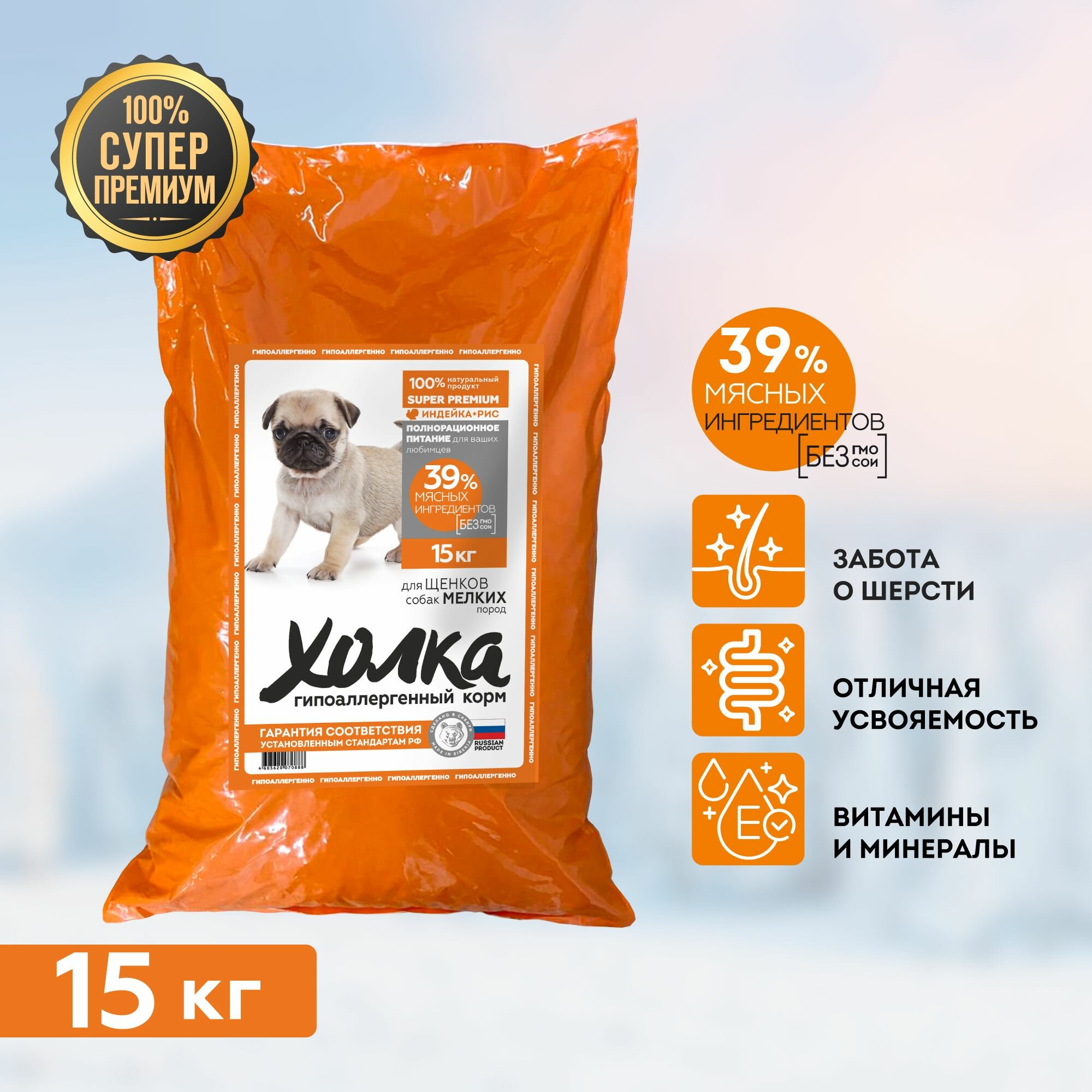 Купить Гипоаллергенный полнорационный корм "Холка" для щенков собак мелких пород (39% мяса) из индейки и риса 15 кг