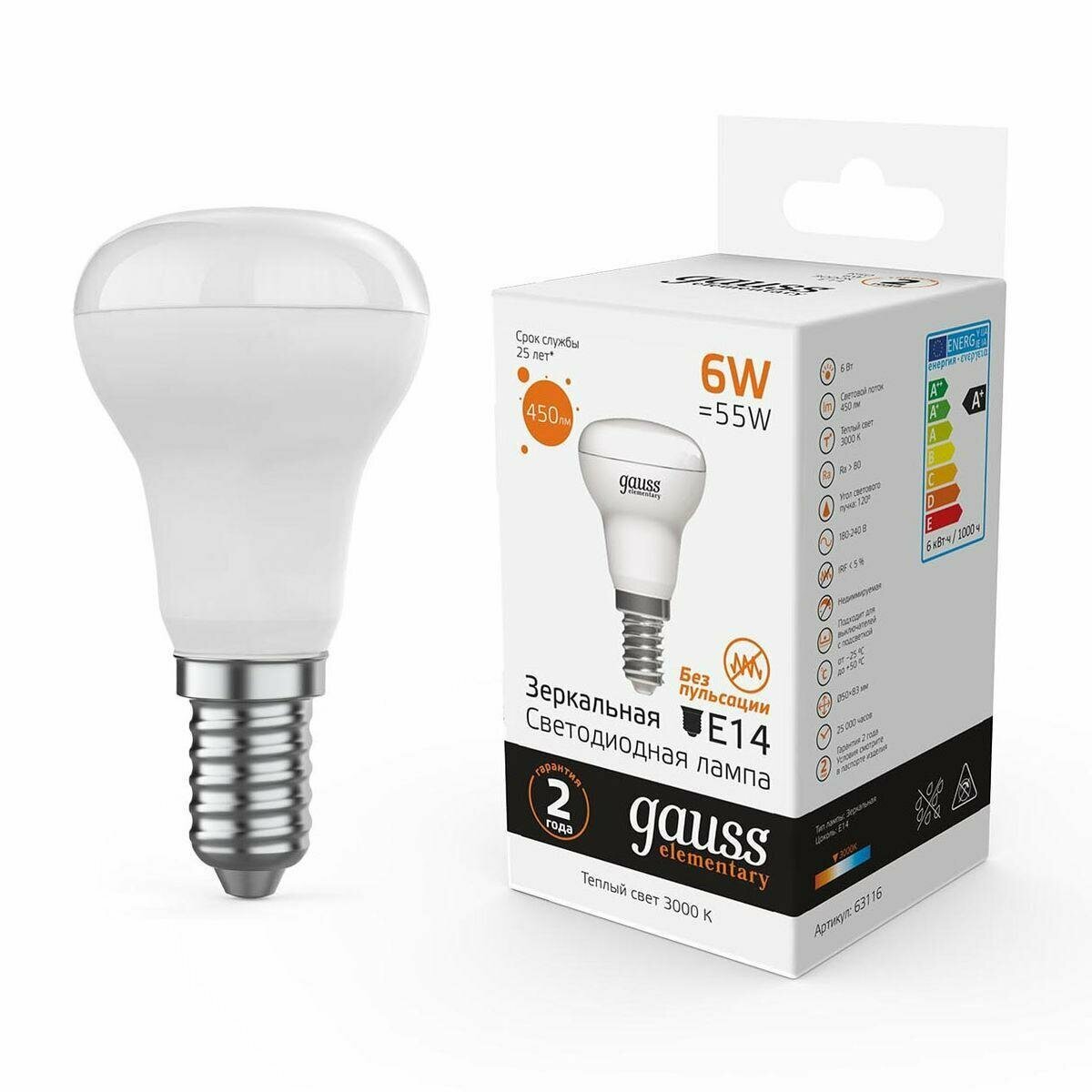 Купить Упаковка ламп 10 штук Gauss Elementary R50 6W 450lm 3000K Е14 LED 1/10/50