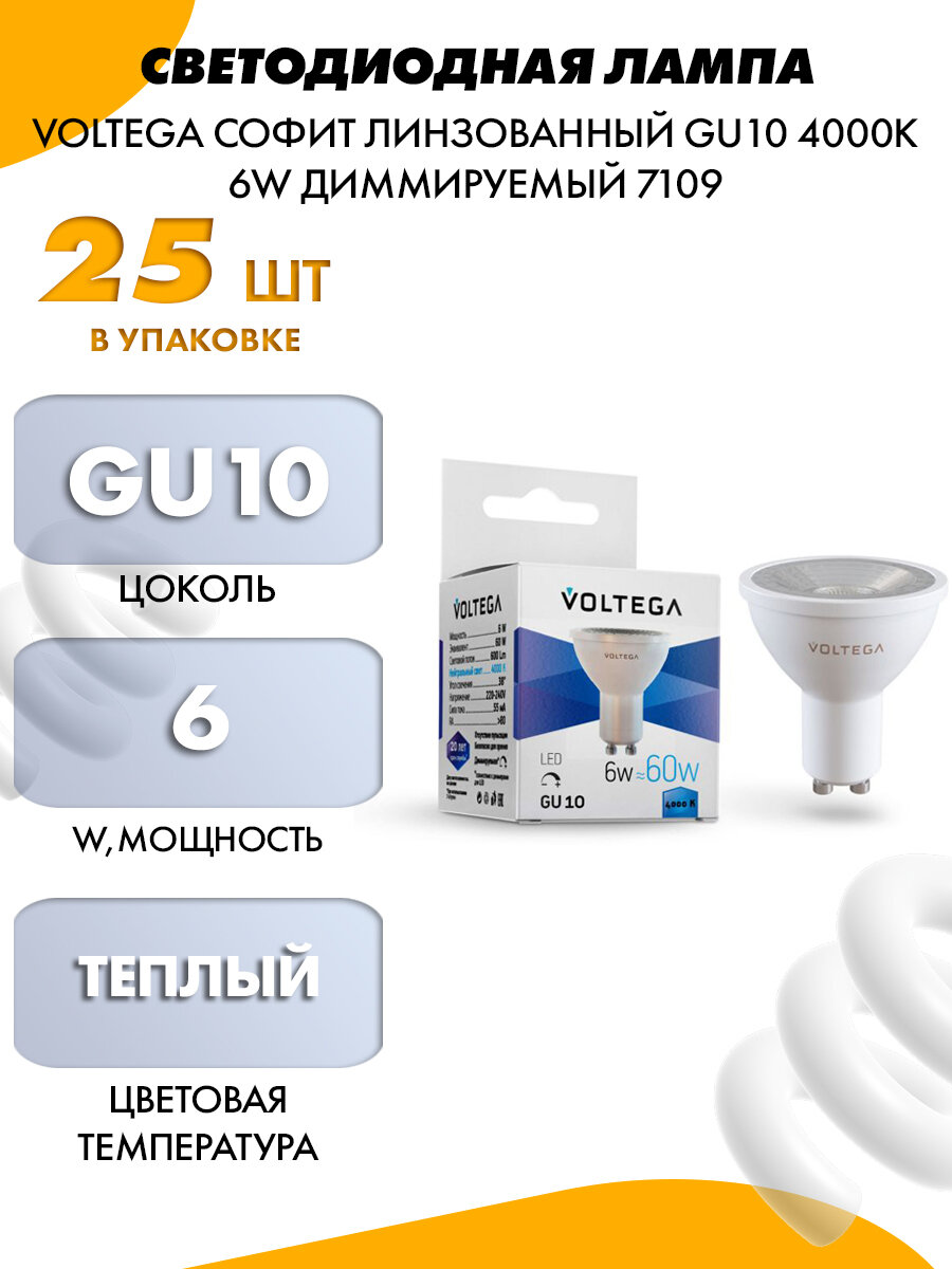 Лампа светодиодная Voltega Simple Sofit dim Lens 7109, GU10, 6 Вт, 4000 К