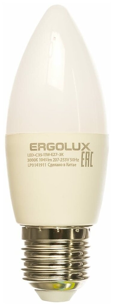 Ergolux (Эл.лампа светодиодная Свеча 11Вт E27 3000K 180-240В) ERGOLUX LED-C35-11W-E27-3K (1 шт.)