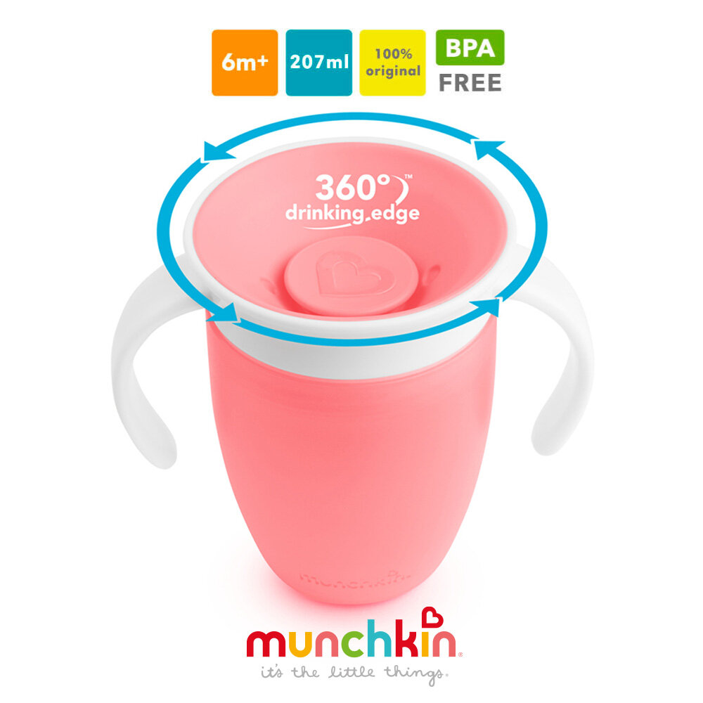 Поильник-непроливайка 360 с ручками 207мл. 6мес+ Munchkin, розовый