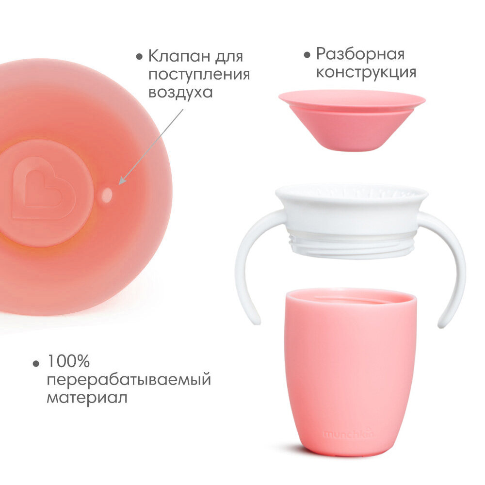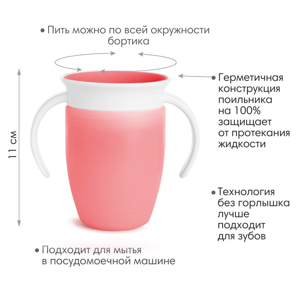 СохранитьMunchkin поильник-непроливайка MIRACLE® 360° с ручками Розовый 207мл. 6+ интересное: