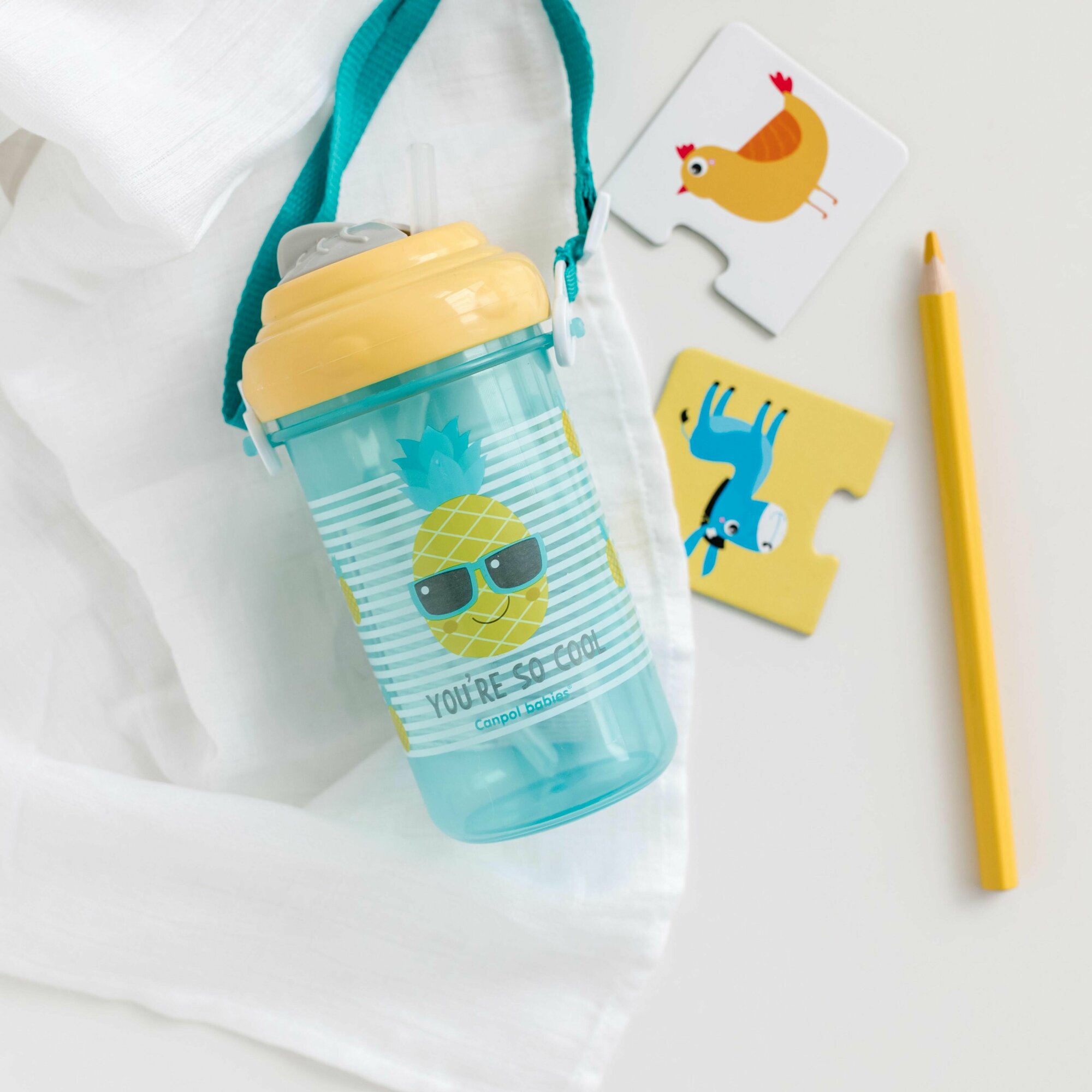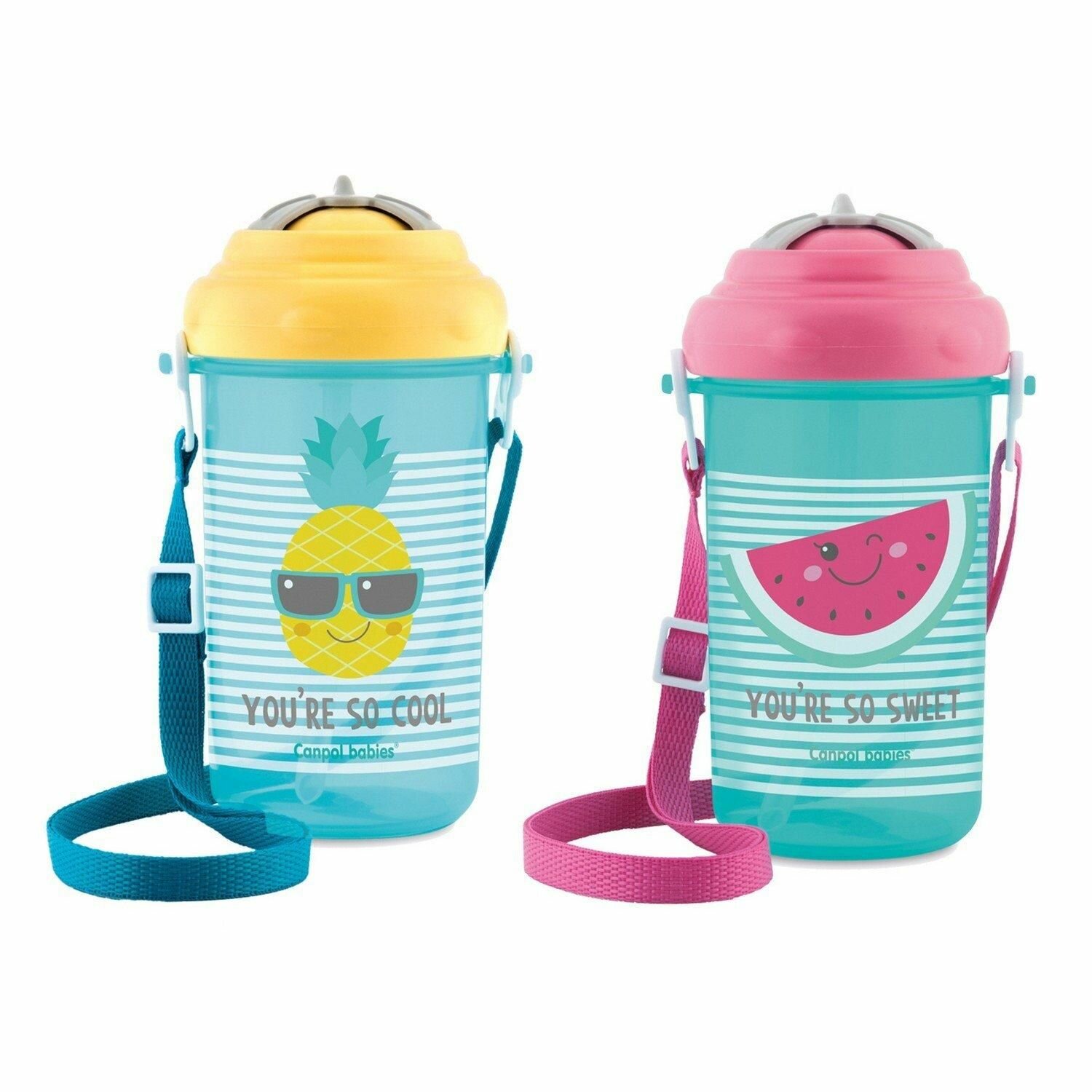С трубочкой, пожалуй, самые удобные поильнички. Трубочка убирается, прячется под крышку, и все закрыто, что позволяет сохранить чистоту и соблюдать гигиену. С ремешком удобным и в дорогу, для пеших прогулок брали, везде с удовольствием ребенок использовал для питья. Рисунок веселый, летний, яркий.