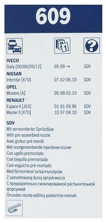 Щетки стеклоочистителя IVECO: Daily II 29 L 10 V/29 L 11/29 L 11 V/29 L 12/29 L 12 V/29 L 13/29 L 9/29 L 9 V/29L10/35 C 10 V, 35 S 10 V/35 C 12, 35 S BOSCH 3397118309