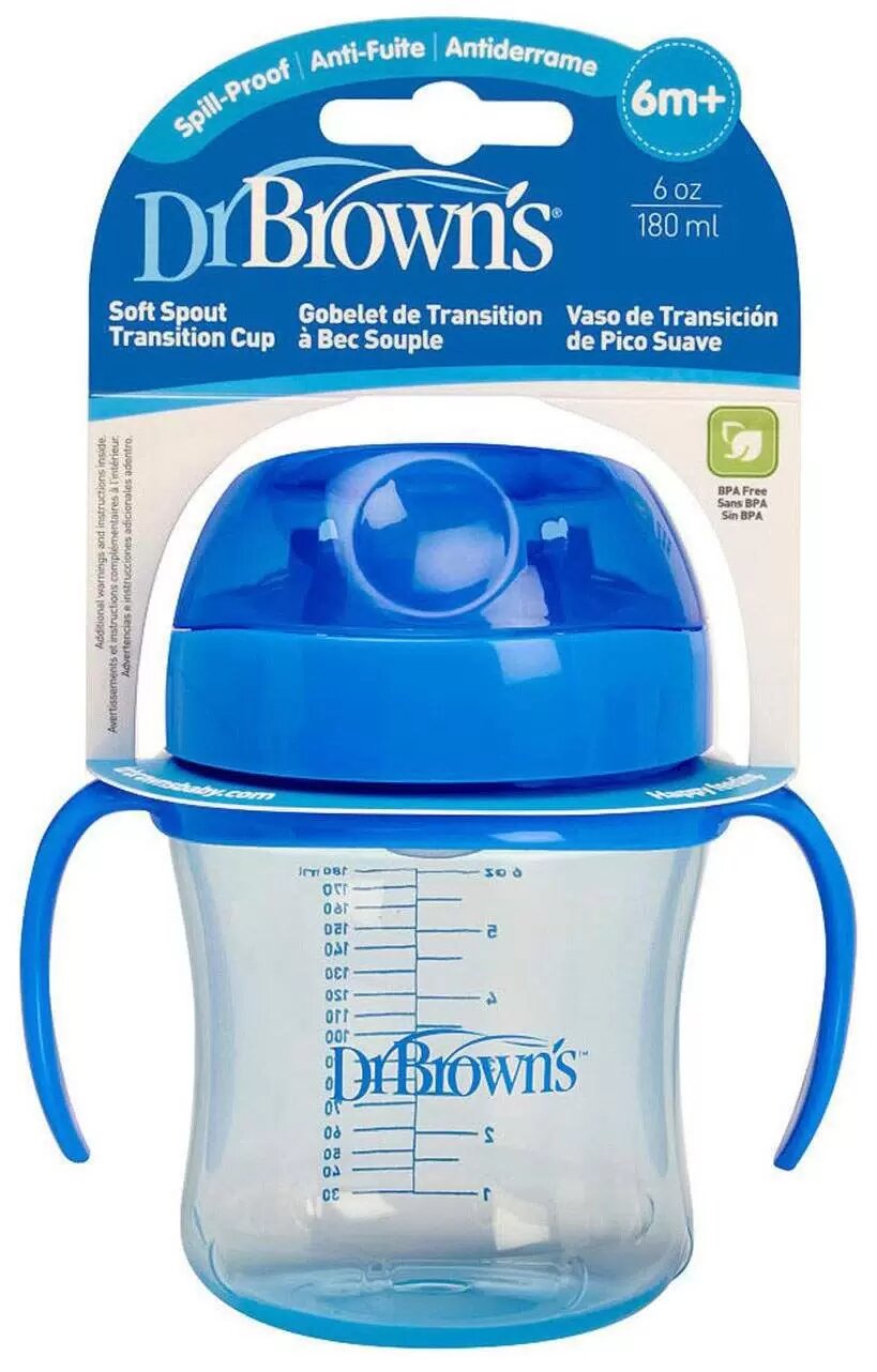 Поильник-непроливайка Dr. Brown's Soft-Spout Transition Cup, 180 мл синий