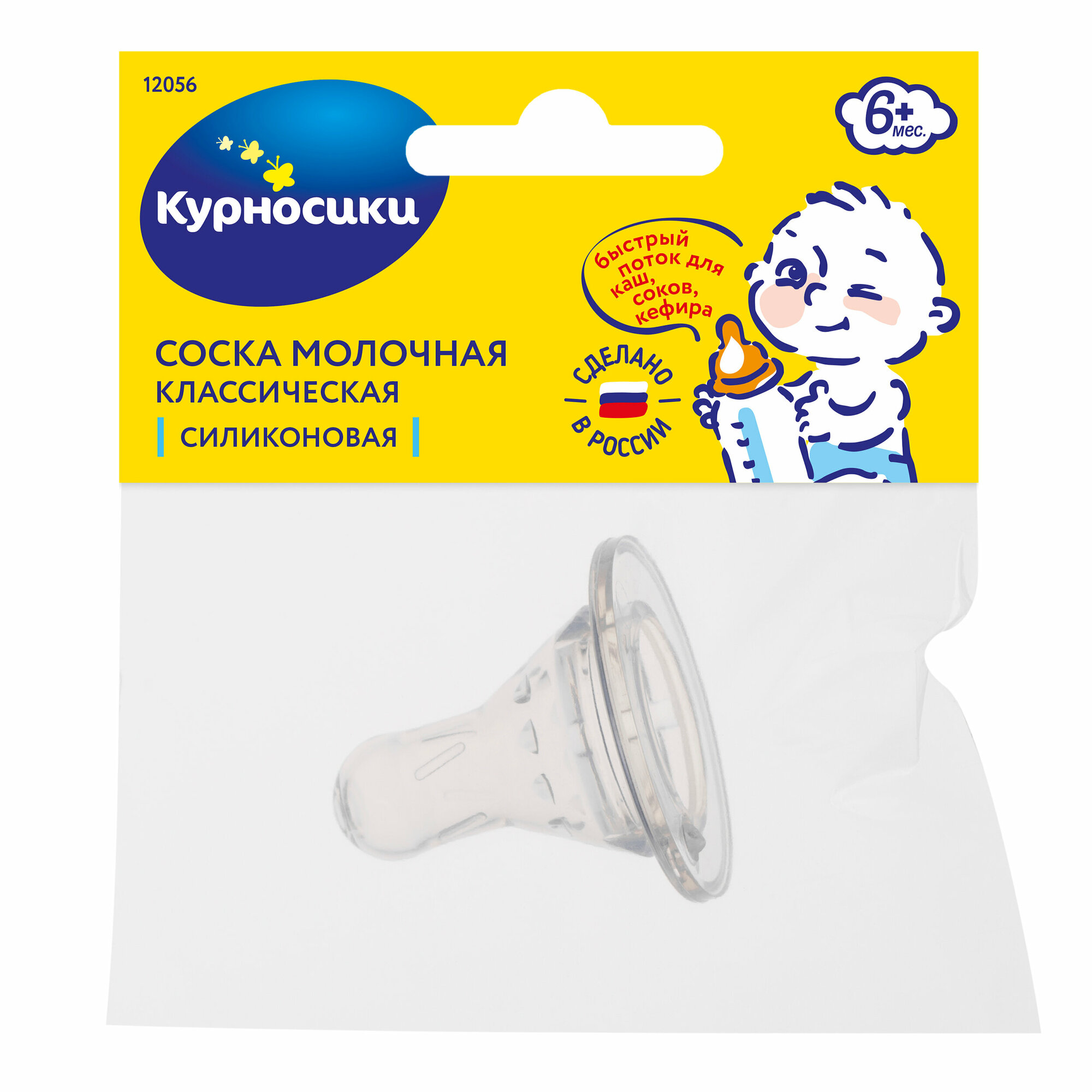 Курносики Соска Классическая силиконовая быстрый поток 6+, 1 шт