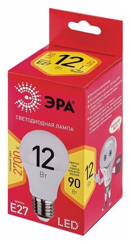 ЭРА Лампочка светодиодная ЭКО LED A60 12W 827 E27 R E27 12Вт груша теплая белая Б0050197