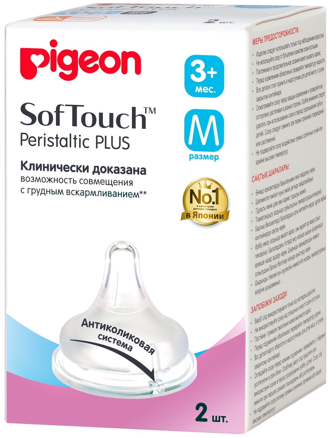 Купить PIGEON Соска для бутылки SofTouchPeristaltic PLUS размер М возраст3 мес 2шт