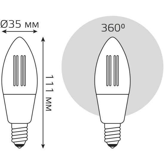 Лампа Gauss Smart Home Filament С35 4,5W 495lm 2700К E14 диммируемая LED 1/10/40