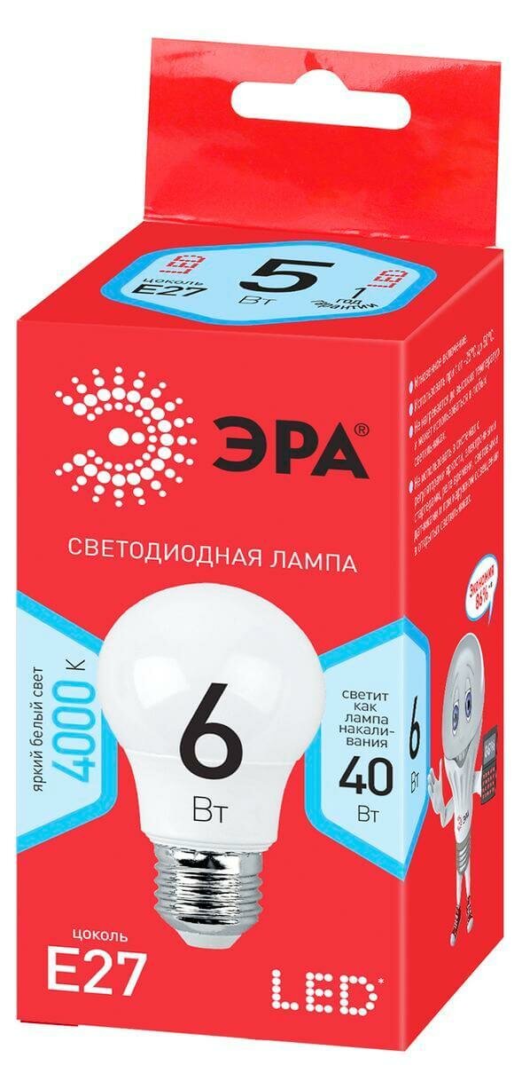 Лампа светодиодная ЭРА E27 6W 4000K матовая LED A55-6W-840-E27 R Б0050688 интересное: