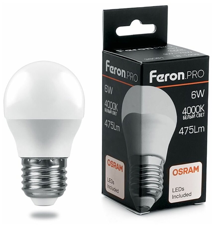 Лампа светодиодная .PRO LB-1406 Шарик E27 6W 4000K, FERON 38069 (1 шт.)