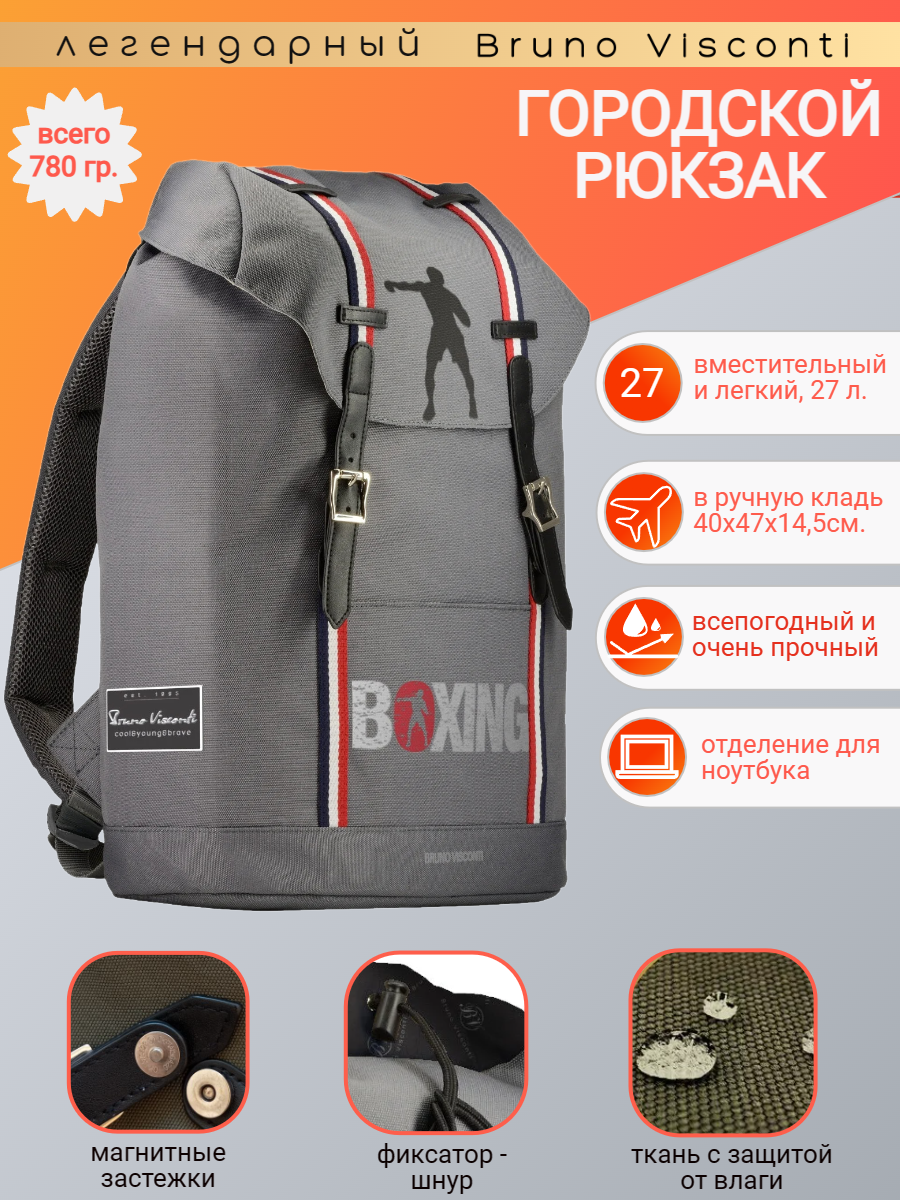 Рюкзак BrunoVisconti, городской, серый , «BOXING», Арт. 12-011-027/05