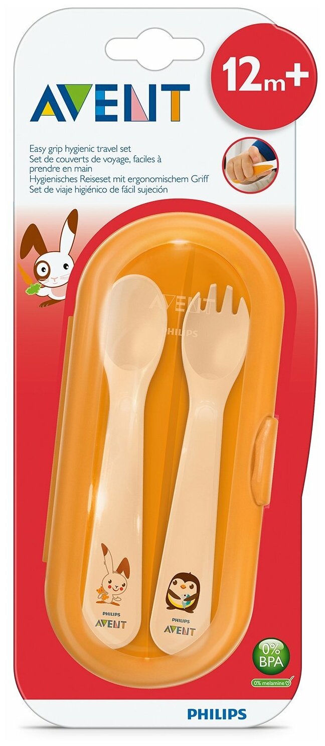 Авент набор для кормления ложка-вилка В дорожном ФУТЛЯРЕ12+МЕС