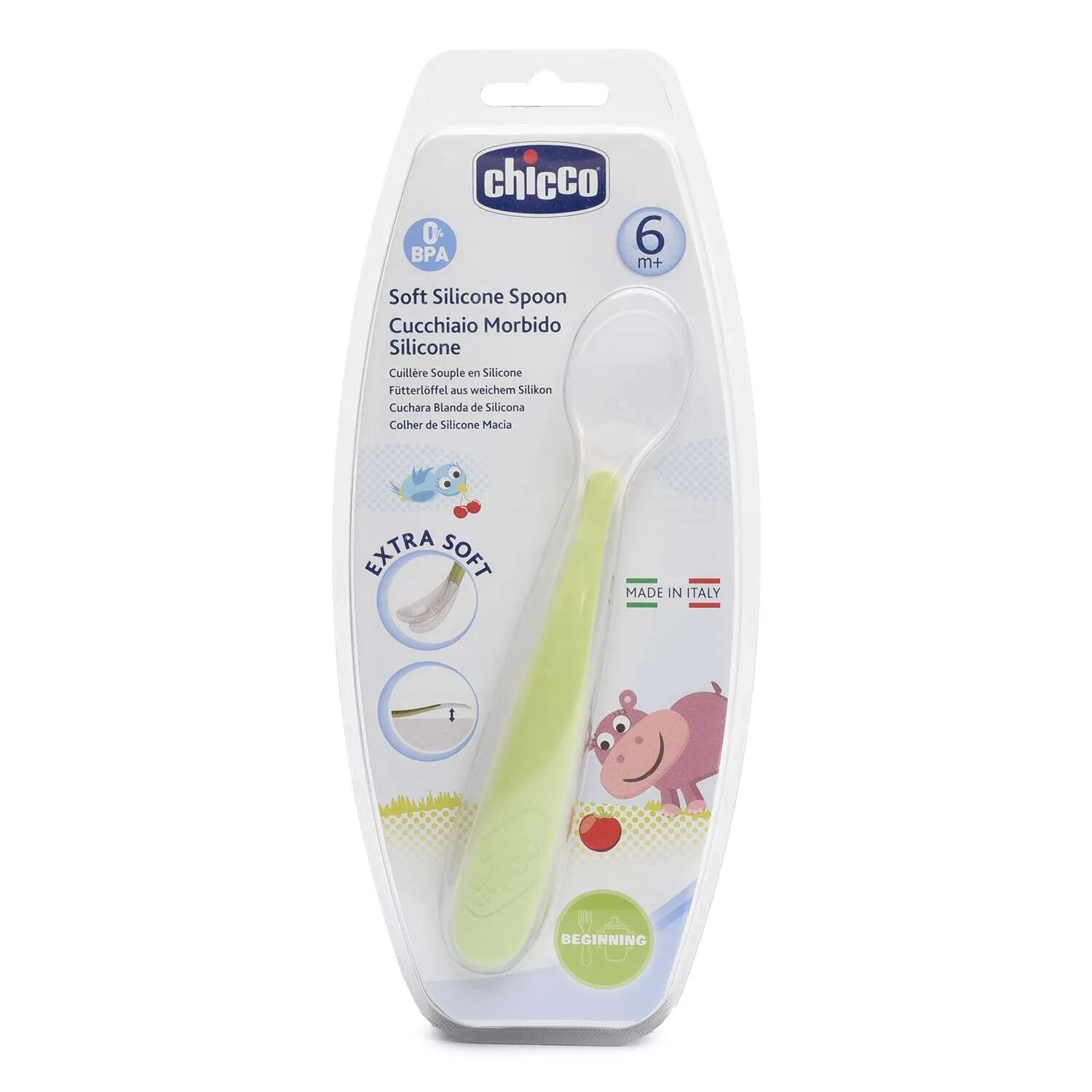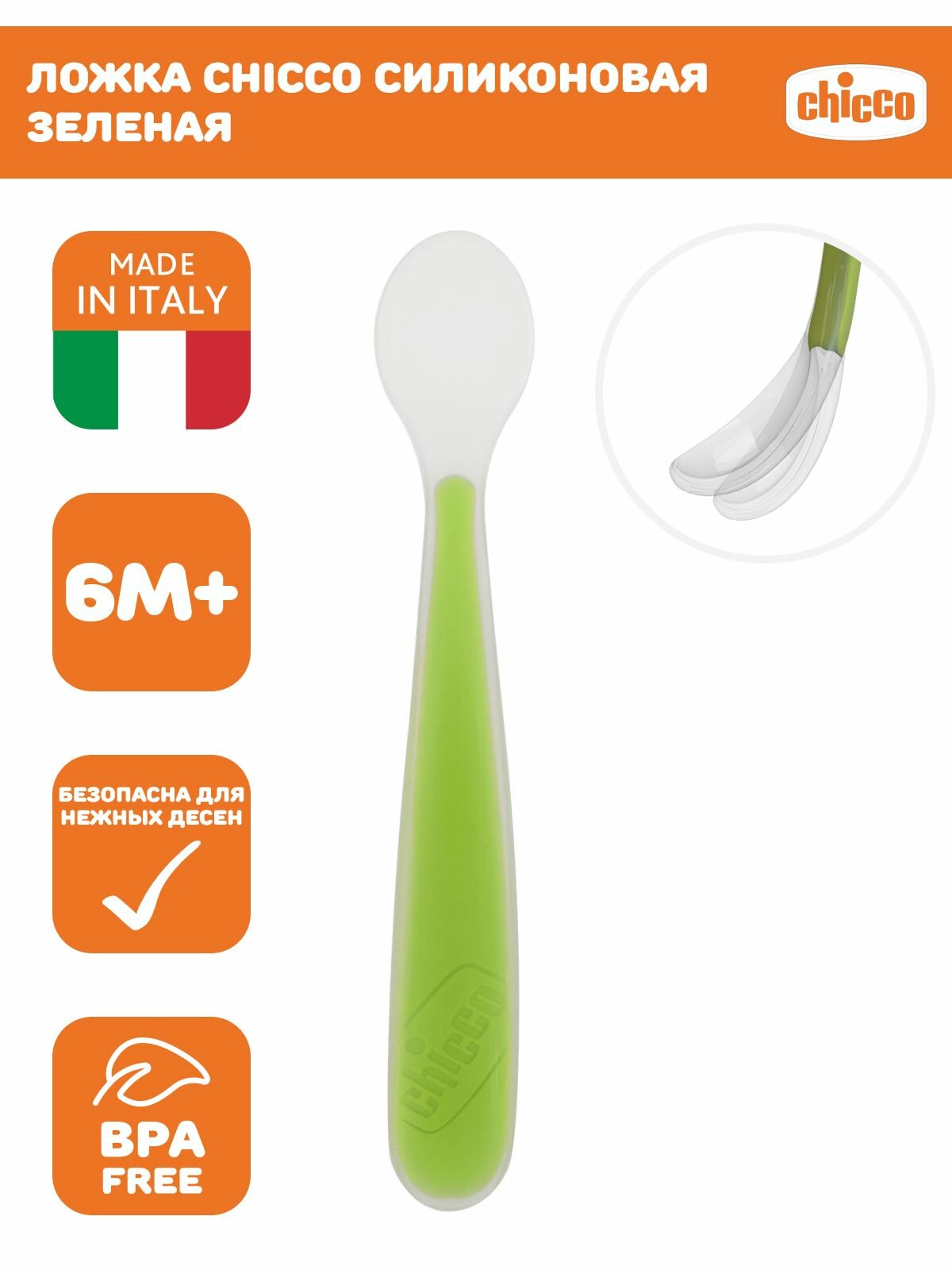 Ложка детская для кормления Chicco мягкая силиконовая от 6 месяцев зеленая