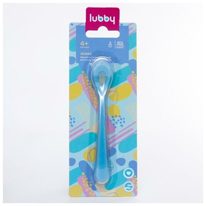 Lubby Ложка детская "Нежная" для кормления, с мягким кончиком, от 4 мес.
