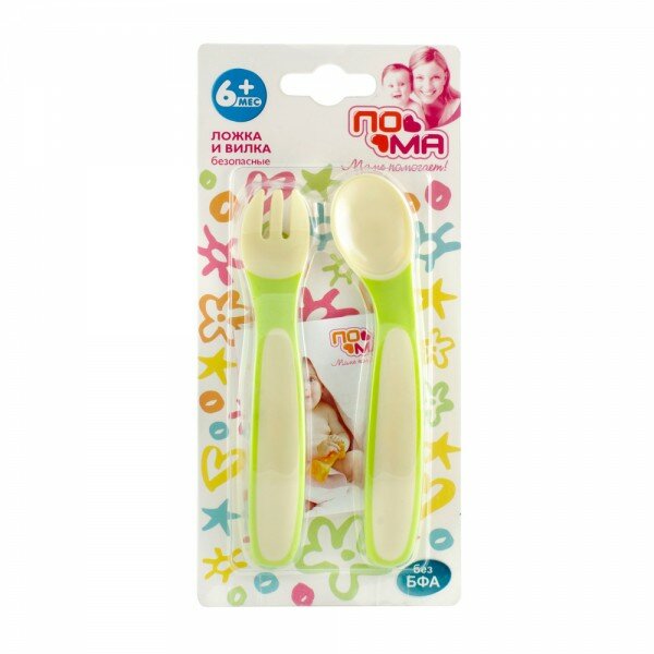Пома Ложечка и вилка безопасные 2 шт. (ПП, термопластичная резина.) 6+/6