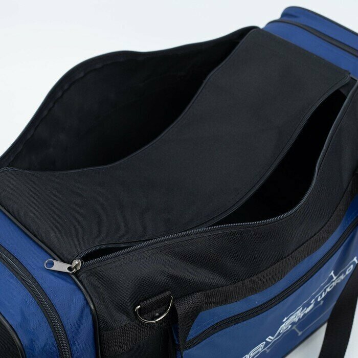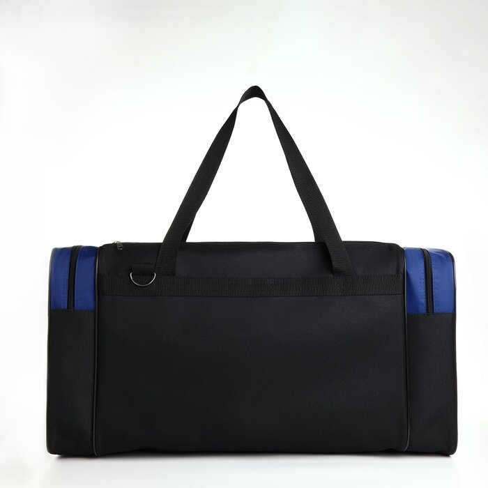 Купить Сумка дорожная на молнии, 3 наружных кармана, длинный ремень, цвет чёрный/синий