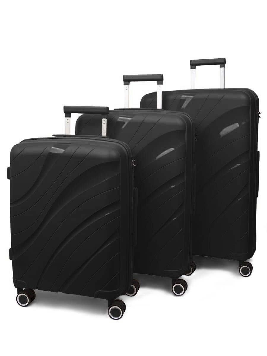 СохранитьЧемодан на колесах дорожный ручная кладь в самолет s TEVIN размер С маленький 55 см ручной 37 л cabin 21" легкий и прочный полипропилен Черный волна интересное: