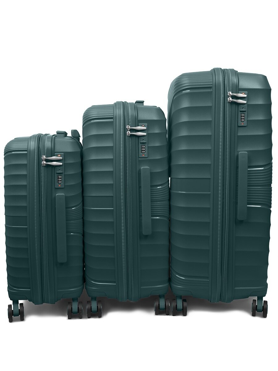 Купить Чемодан на колесах дорожный ручная кладь в самолет s TEVIN размер С компактный 55 см ручной 37 л cabin 21 легкий и прочный полипропилен Зеленый темный