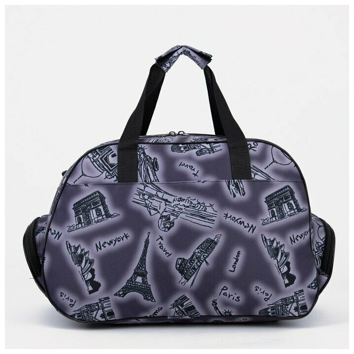 Сумка дорожная, ручная кладь, отдел на молнии, 2 наружных кармана, длинный ремень, цвет чёрный/серый интересное: