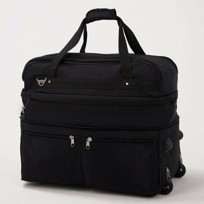 Купить Сумка дорожная на колёсах, отдел на молнии, с увеличением, 2 наружных кармана, длинный ремень, цвет чёрный