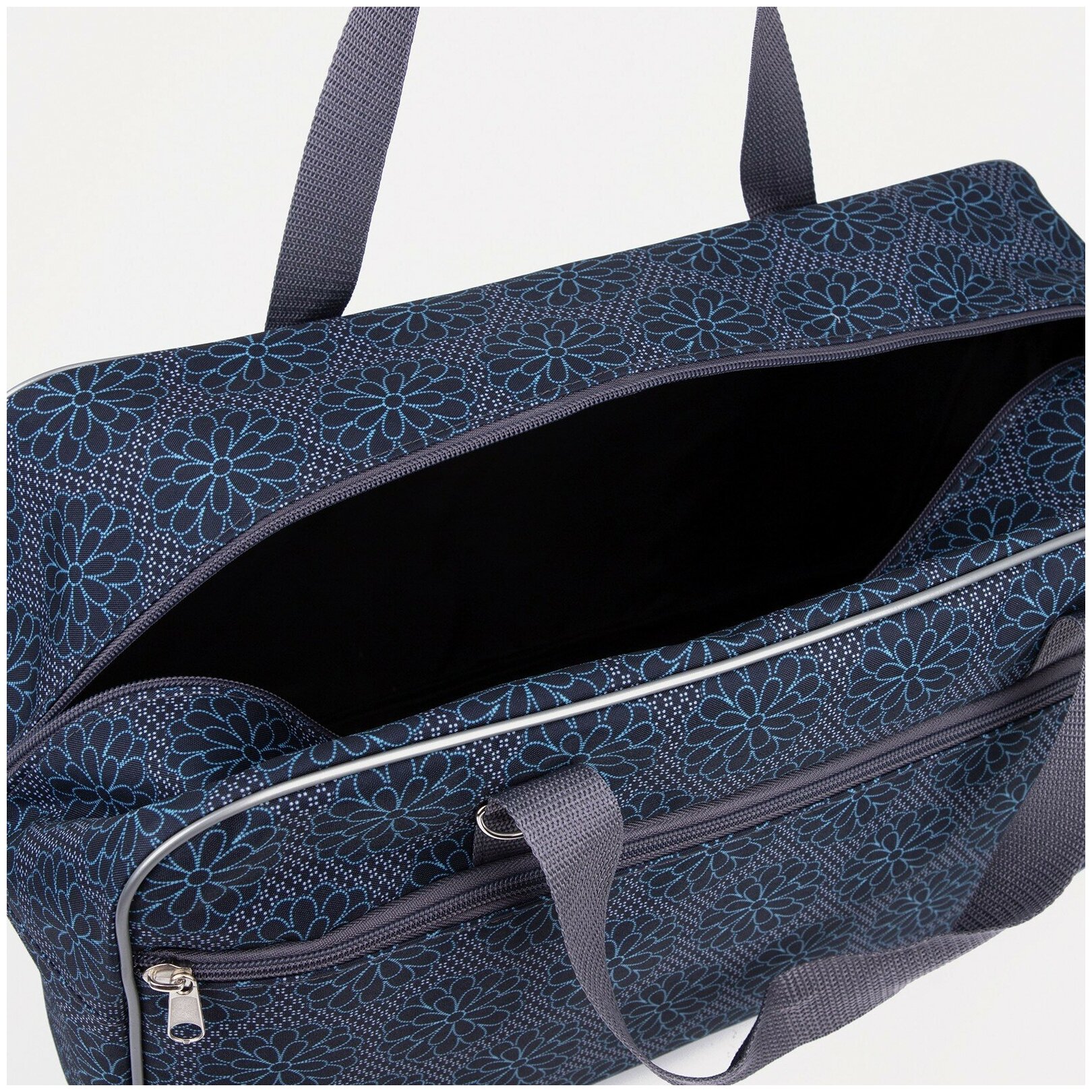 5930/Д Сумка дор, 48*21*28, отд на молнии, н/карман, длин ремень, цветок черно/серо/синий 9304279