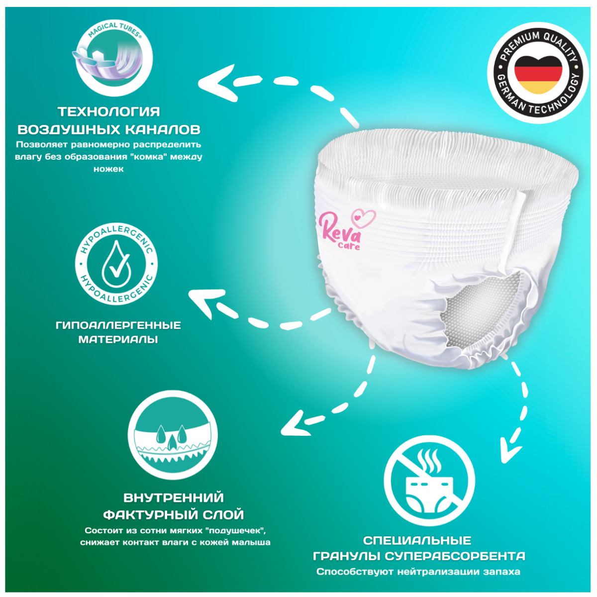 Подгузники-трусики Reva Care Premium L (7-18 кг), 44 шт.
