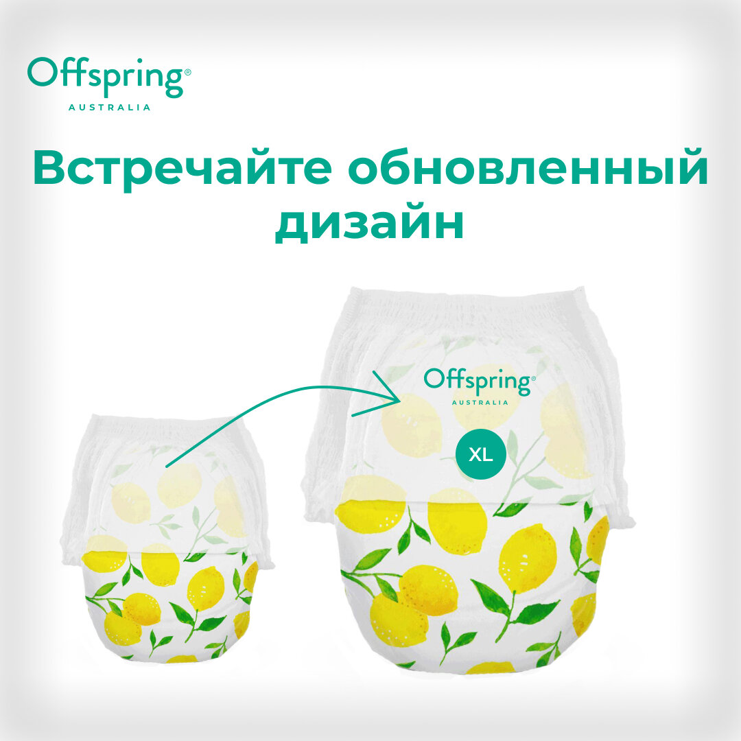 Купить Offspring трусики-подгузники XL 12-20 кг 30 шт расцветка Лимоны