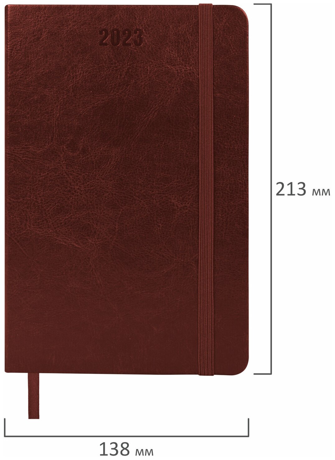 Ежедневник датированный 2023 А5 138x213 мм BRAUBERG "Metropolis Special" под кожу коричневый, 1 шт
