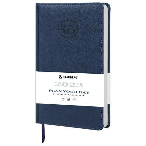 BRAUBERG Ежедневник датированный 2023 А5 138x213мм Favorite, под кожу, темно-синий, 114005