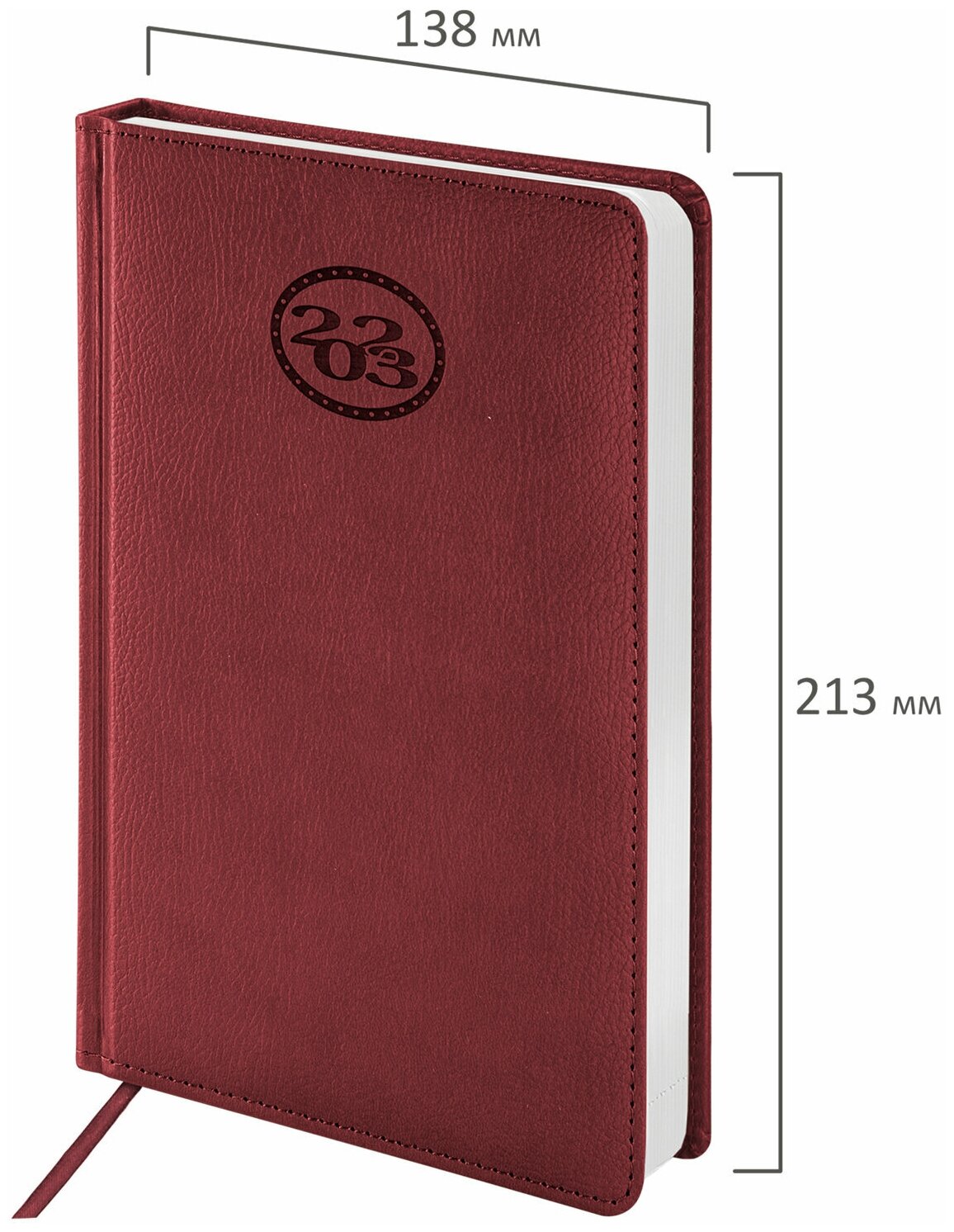 Ежедневник датированный 2023 А5 138x213 мм BRAUBERG "Favorite", под кожу, бордовый, 114003