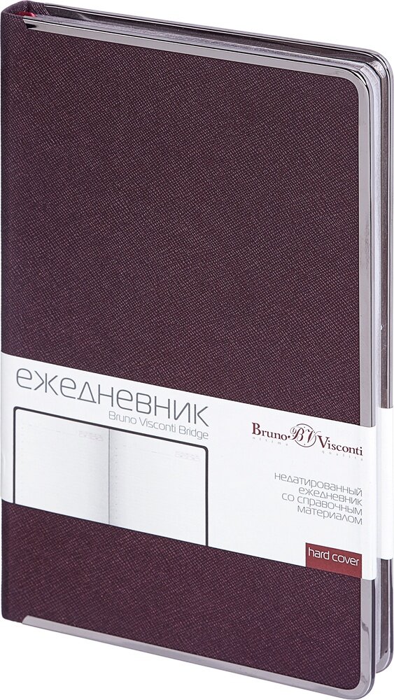 BrunoVisconti Ежедневник недатированный А5, 136 листов BRIDGE, обложка искусственная кожа, серебряный срез, бордовый