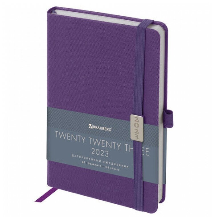 Ежедневник датированный 2023 А5 138x213 мм BRAUBERG "Control", под кожу, сиреневый