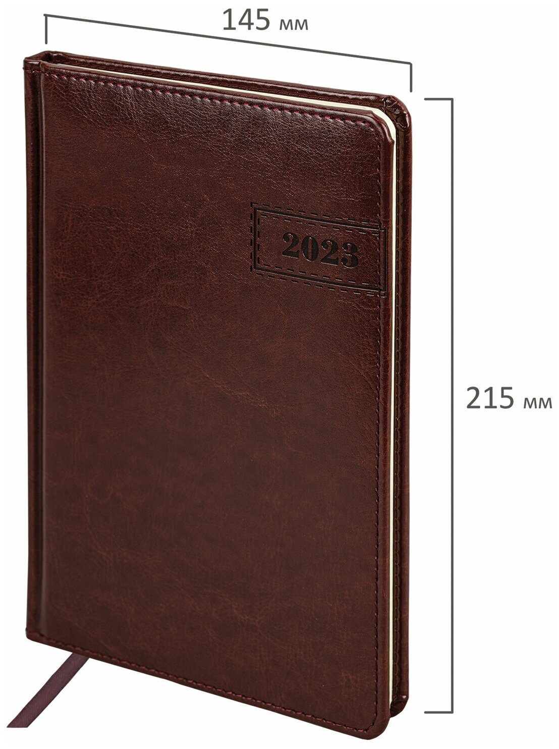 Еженедельник датированный 2023, А5, 64л., кожзам, Brauberg "Imperial", ляссе, коричневый интересное: