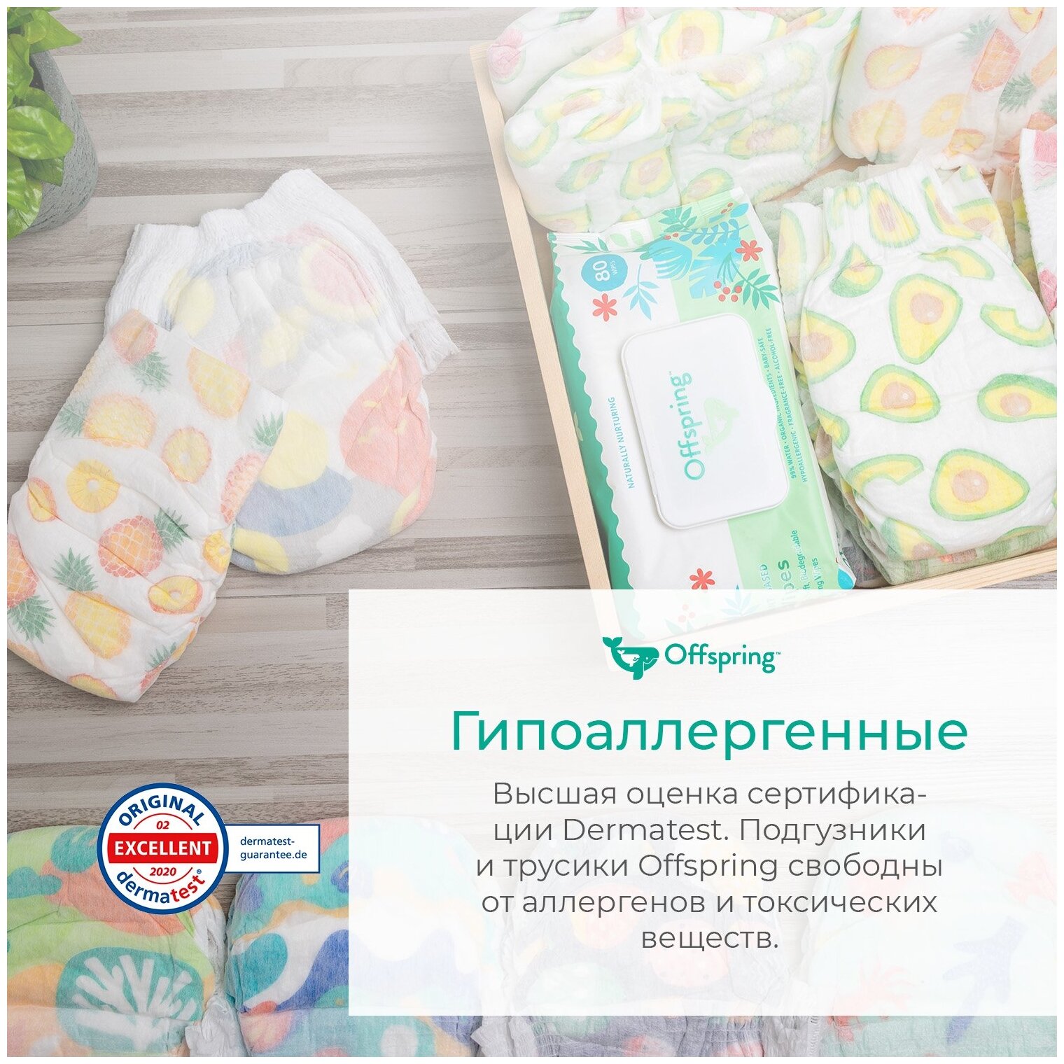 Offspring Подгузники размер S, расцветка "Авокадо", 3-6 кг, 48 шт