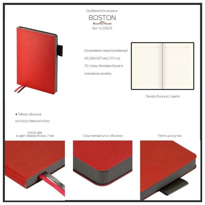 Ниже Вы можете прочитать отзывы на Ежедневник недатированный А5 Bruno Visconti Boston (136 листов) обложка кожзам, черный, зеленый обрез, ознакомится с подробными характеристиками, посмотреть интересные обзоры и фотографии на Ежедневник недатированный А5 Bruno Visconti Boston (136 листов) обложка кожзам, черный, зеленый обрез.
