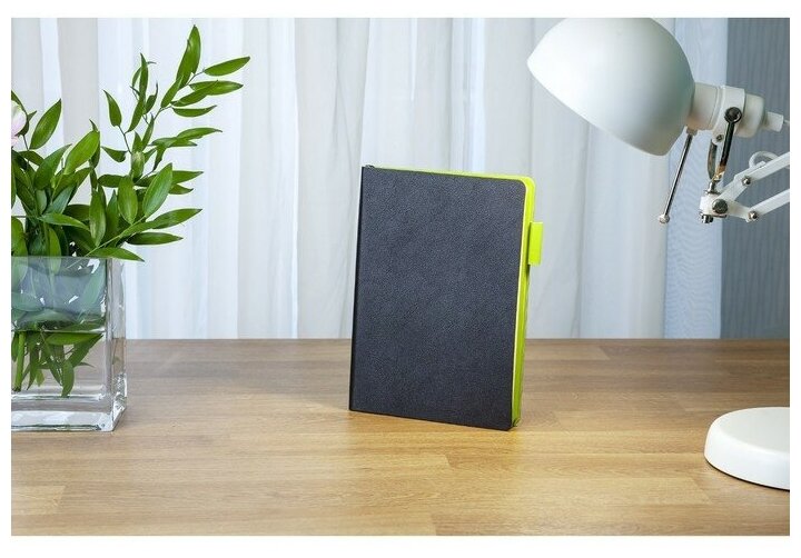 Ежедневник недатированный А5 Boston, черный (обрез зеленое яблоко)