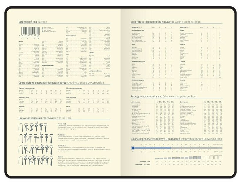 | Особенности | ляссе / металлические уголки на обложке / перфорация уголков / поля / прошивка по периметру обложки / справочная информация / цветной обрез |
