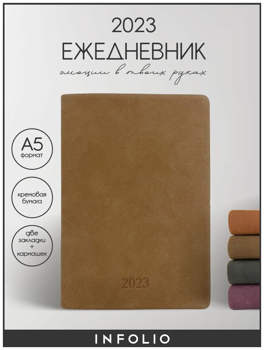 Ежедневник датированный 2023 Infolio "Soft", А5 на 176 листов, мягкая обложка из искусственной замши интересное: