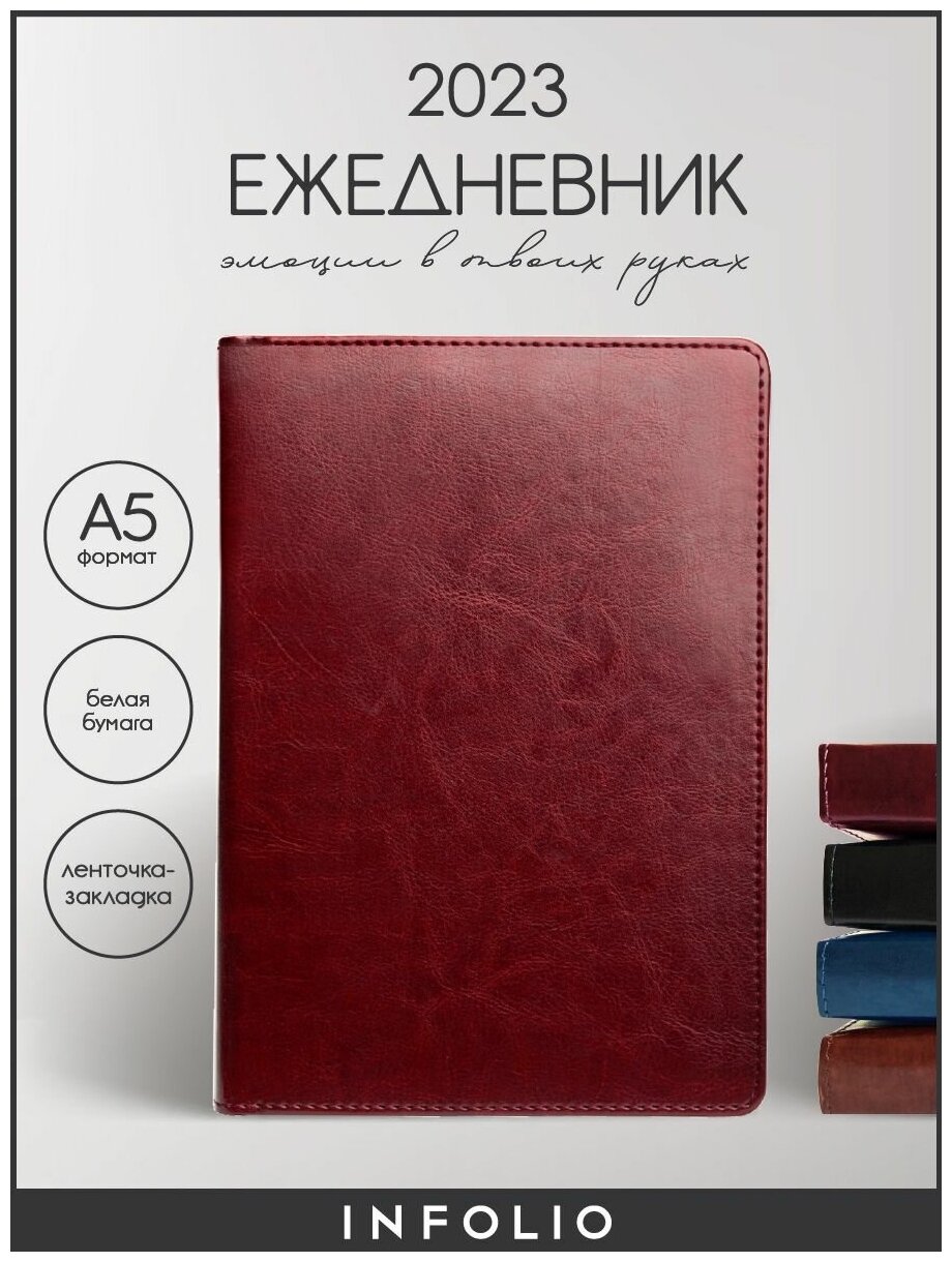 Ежедневник датированный 2023 Infolio "Berlin", А5 на 176 листов, твердая с поролоном обложка из искусственной кожи интересное: