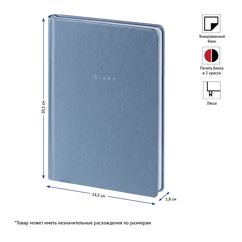 Ежедневник недатированный A5 OfficeSpace "Grace pearl" (160 листов) обложка кожзам, синий, серебр.срез (ENA5_32583)