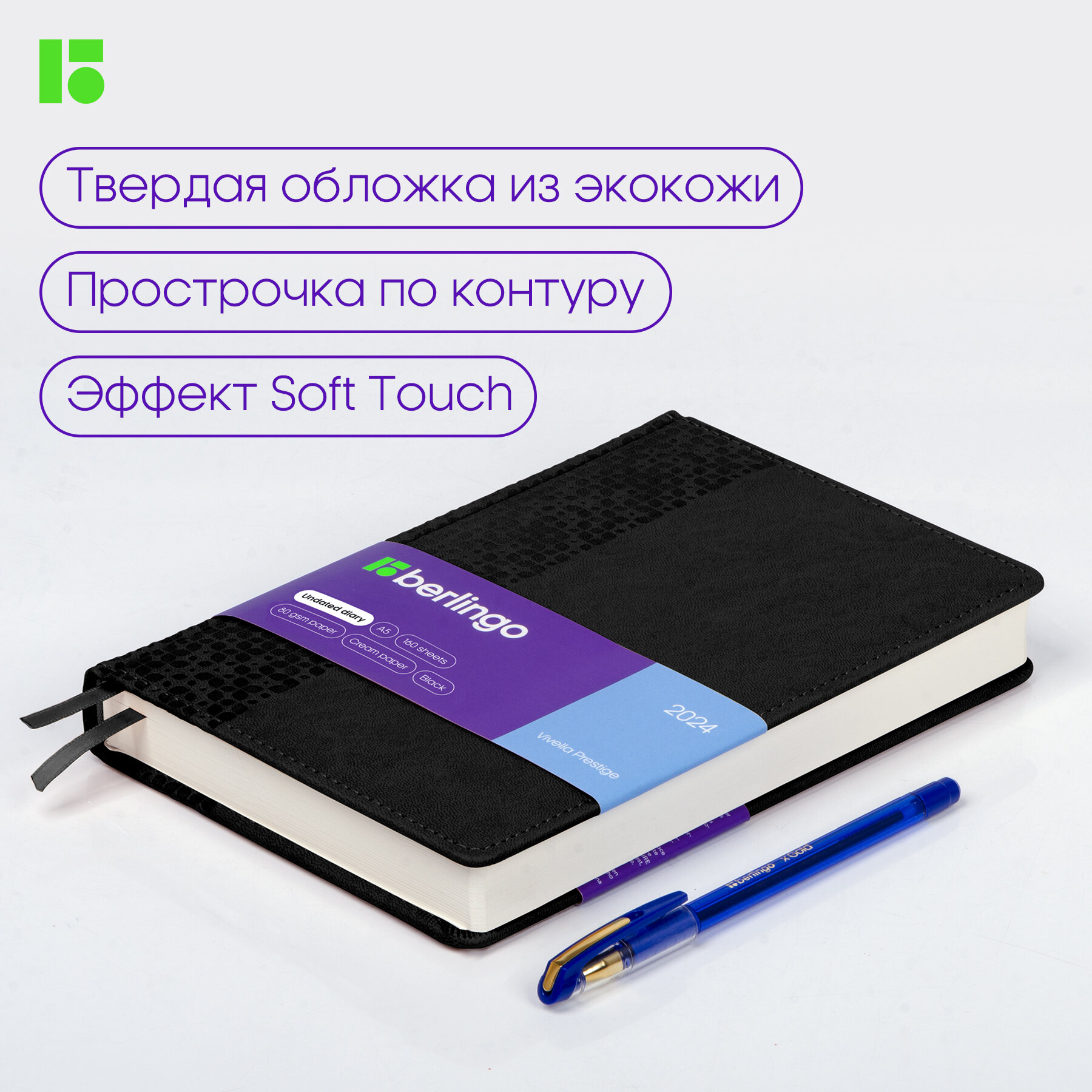 Ежедневник BERLINGO недатир. A5, 160л., кожзам, "Vivella Prestige", фиолетовый