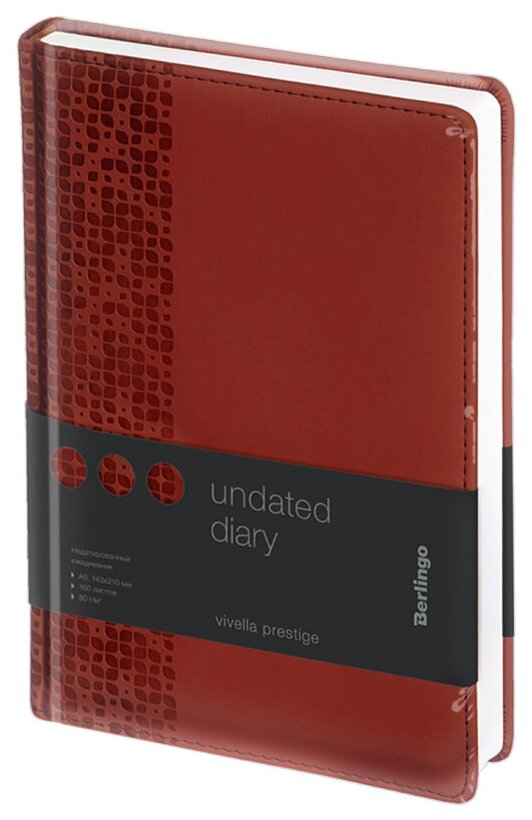 Ежедневник недатир. A5, 160л., кожзам, Berlingo "Vivella Prestige", красный (арт. 276372)