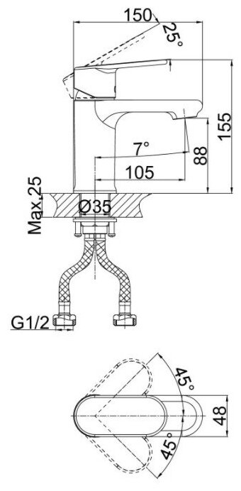 | Длина излива | 105 мм |